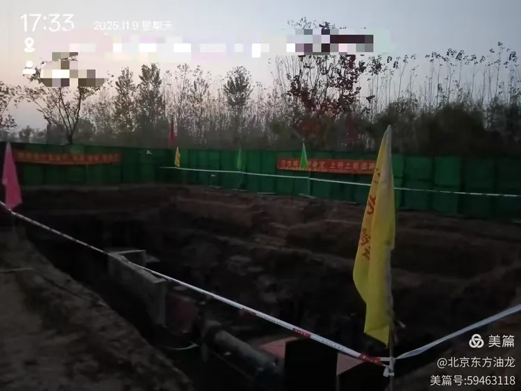 工地被绿网围起,像一座暂时沉睡的城。黄昏的光斜斜地打在土坡上,照出几分温柔,又带着施工前的寂静。我站在这片被规划好的土地边缘,看着旗帜在风里轻轻晃动,粉的、黄的,像是某种无声的信号。这里很快就要热闹起来了——北京东方油龙安装项目,从这一刻起,不再只是图纸上的线条。