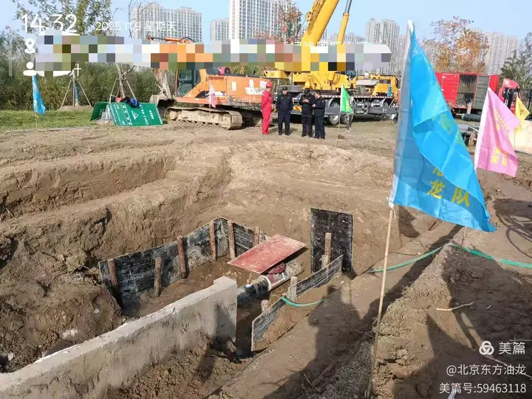 今天是正式开工的第三天。土坑已经挖得深了,钢筋骨架像巨兽的肋骨,撑起地下的结构。我走近时,听见金属敲击的清脆声响,工人们在红色钢板旁比划着尺寸,有人喊了句什么,声音淹没在起重机缓缓转动的轰鸣里。远处高楼林立,而我们正埋首于地底的脉络。蓝旗上“油龙队”在风里猎猎作响,像是某种承诺——这根管线,要从这里穿城而过,连起能源的命脉。